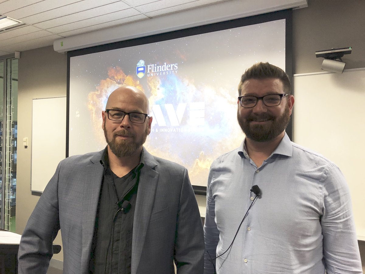 18.09.2018: Corey Bradshaw introduces Dr Justin Chalker for the Flinders BRAVE Research and Innovation public lecture series