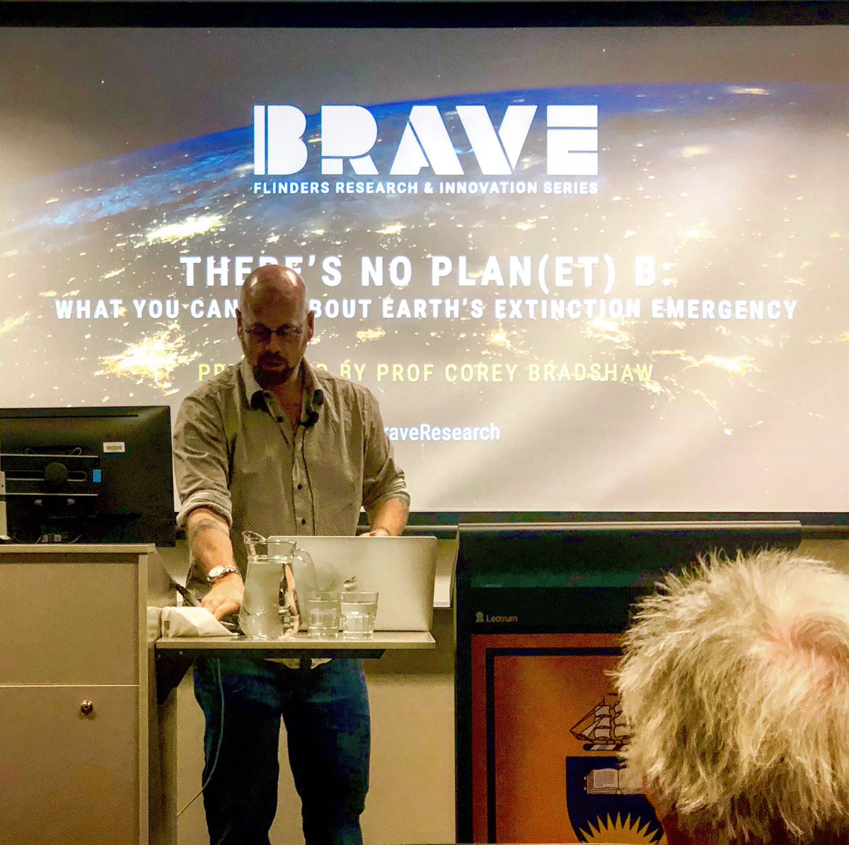 16.04.2019: Corey Bradshaw gives the Flinders BRAVE Lecture ‘There is no plan(et) B‘ in Adelaide
