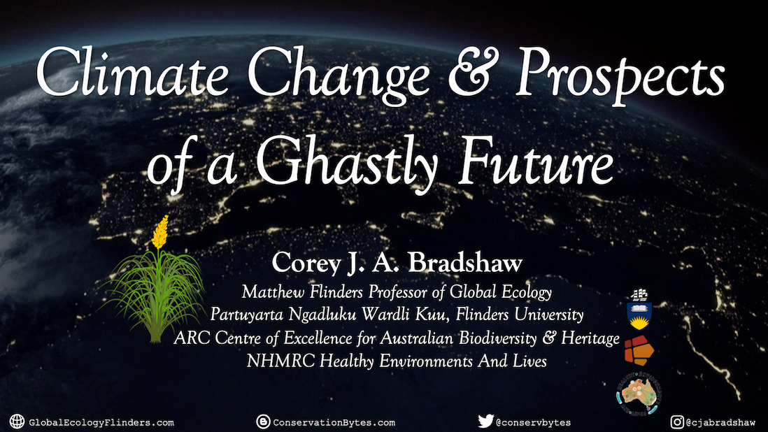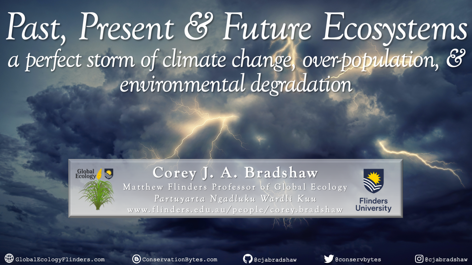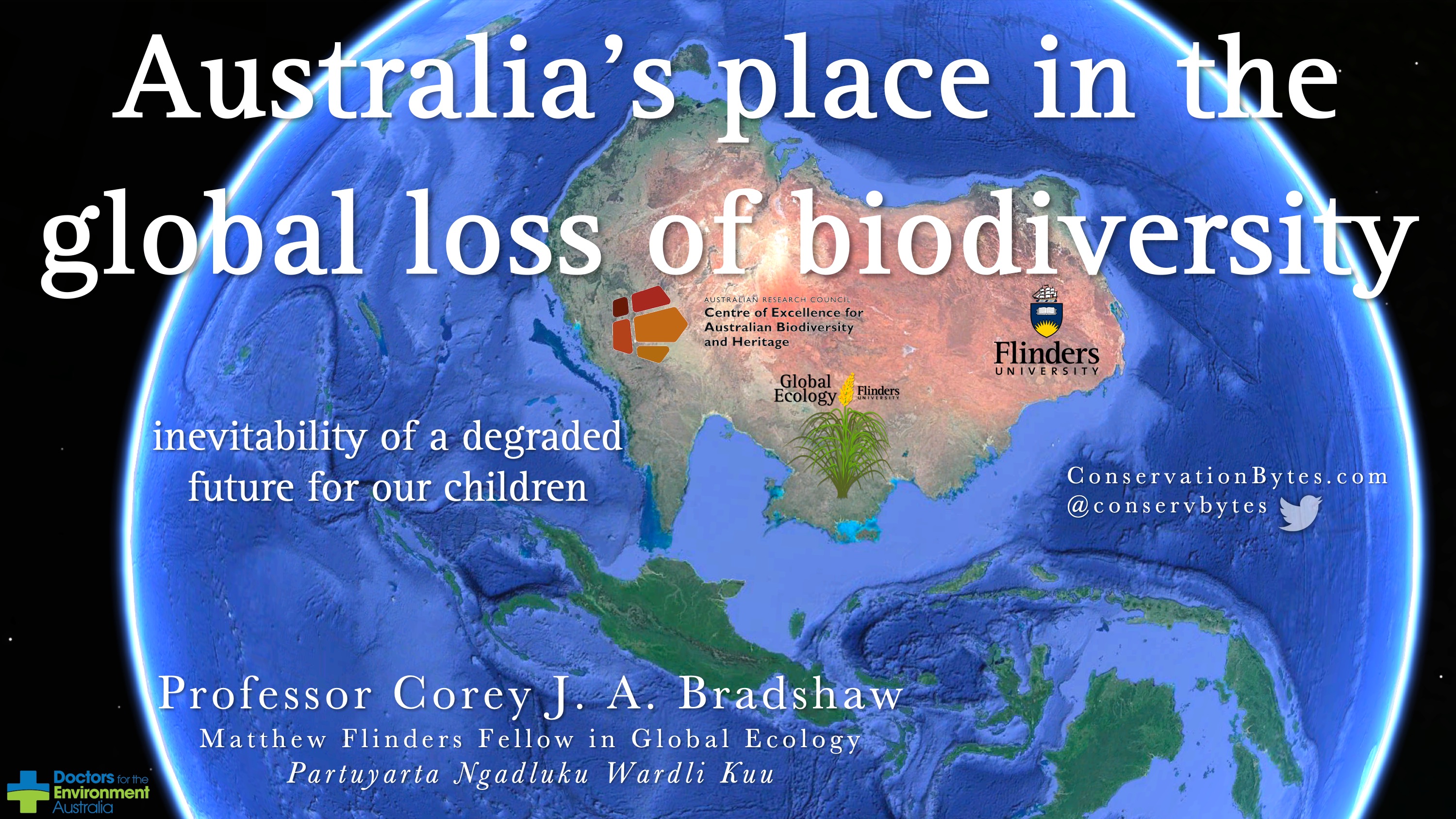 24.05.2020: Corey Bradshaw presented ‘Australia’s place in the global loss of biodiversity: inevitability of a degraded future for our children‘ (view recorded version here) to Doctors for the Environment Australia