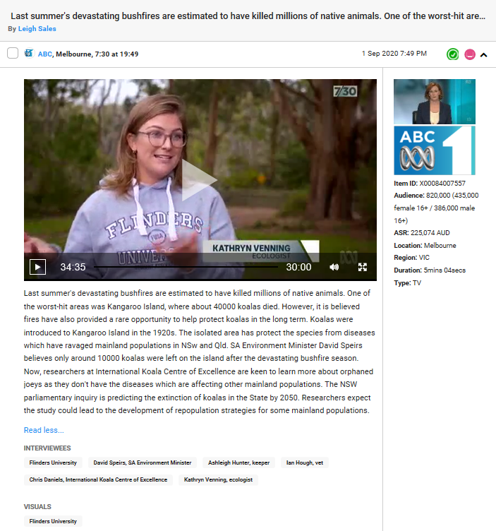 01.09.2020: Kathryn ‘KV’ Venning appeared on ABC 7.30 Report talking about koalas (view full piece here). Well done, KV!