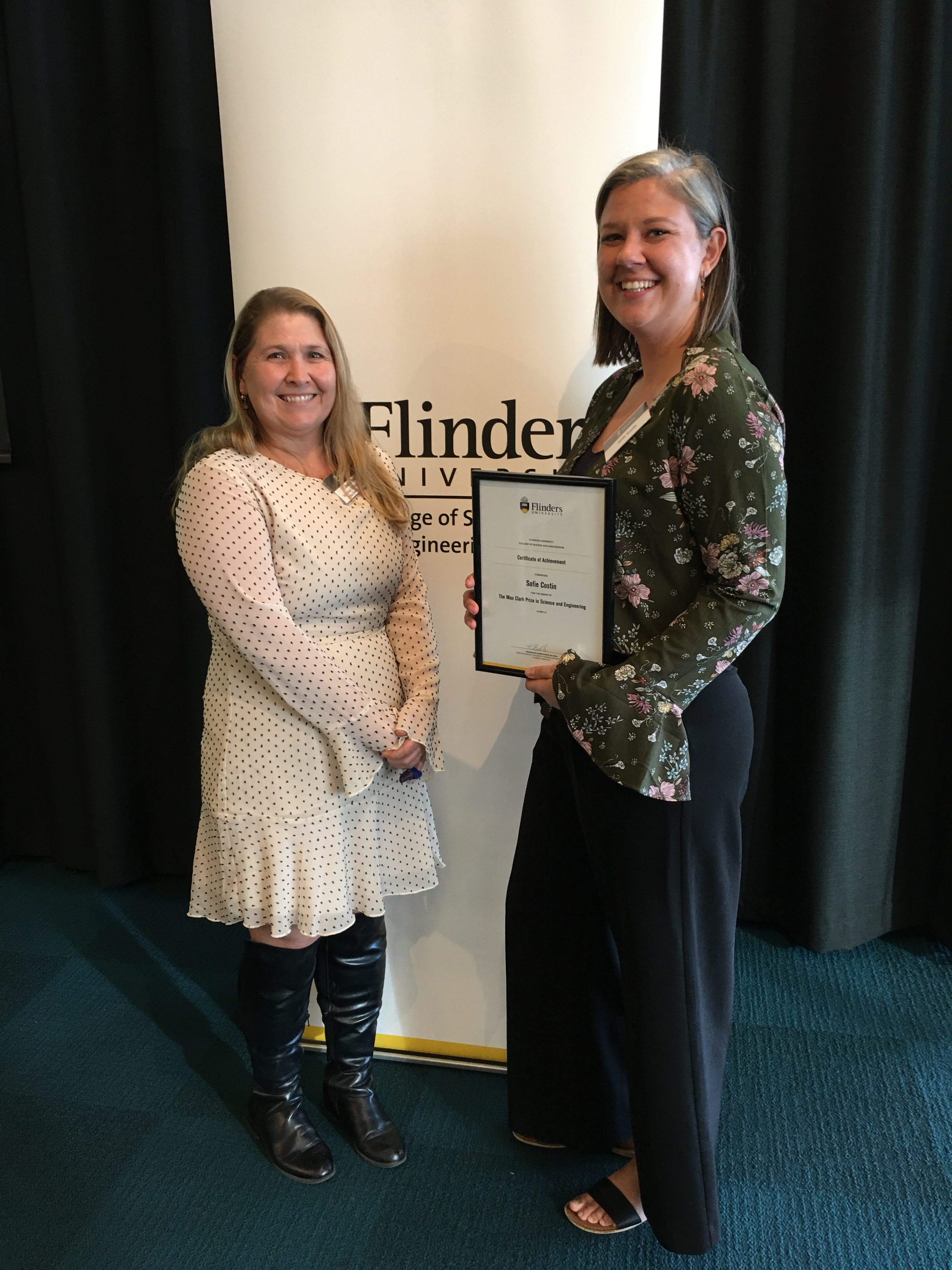 18.05.2021: Sofie Costin receives the Max Clark Prize in Science & Engineering (1 of 5 top students) at the Flinders University, College of Science and Engineering Annual Prizes & Awards Ceremony