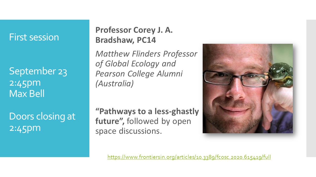24.09.2021: Corey Bradshaw presented ‘Pathways to a less-ghastly future’ (online) to the current students of Lester B. Pearson United World College of the Pacific