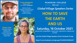 16.10.2021: Corey Bradshaw, along with colleague Eileen Crist, presented ‘How to save the Earth us’ in the Global Village Speakers Series (online)