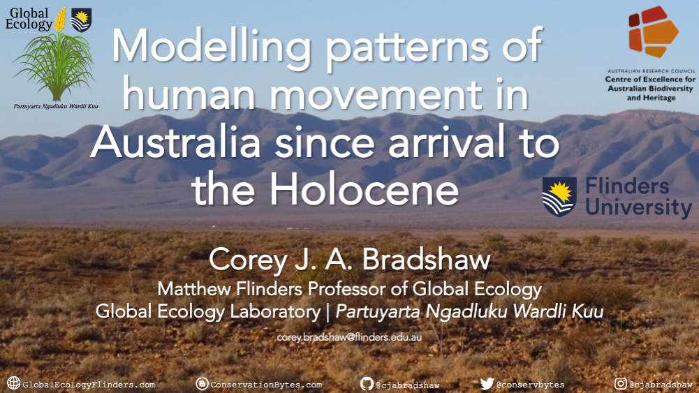 15.09.2022: Corey Bradshaw presents ‘Modelling patterns of human movement in Australia since arrival to the Holocene’ (online) for the University of Western Australia Archaeology Seminar Series