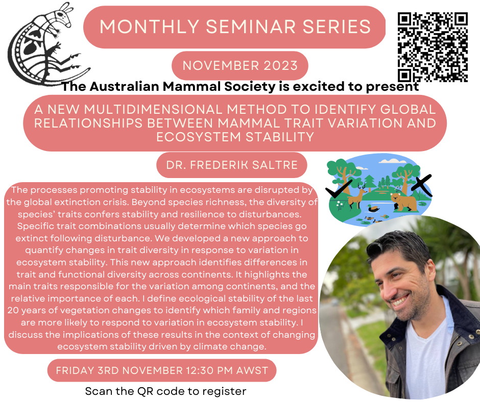 31.10.2023: Frédérik Saltré delivers the Australian Mammal Society November seminar