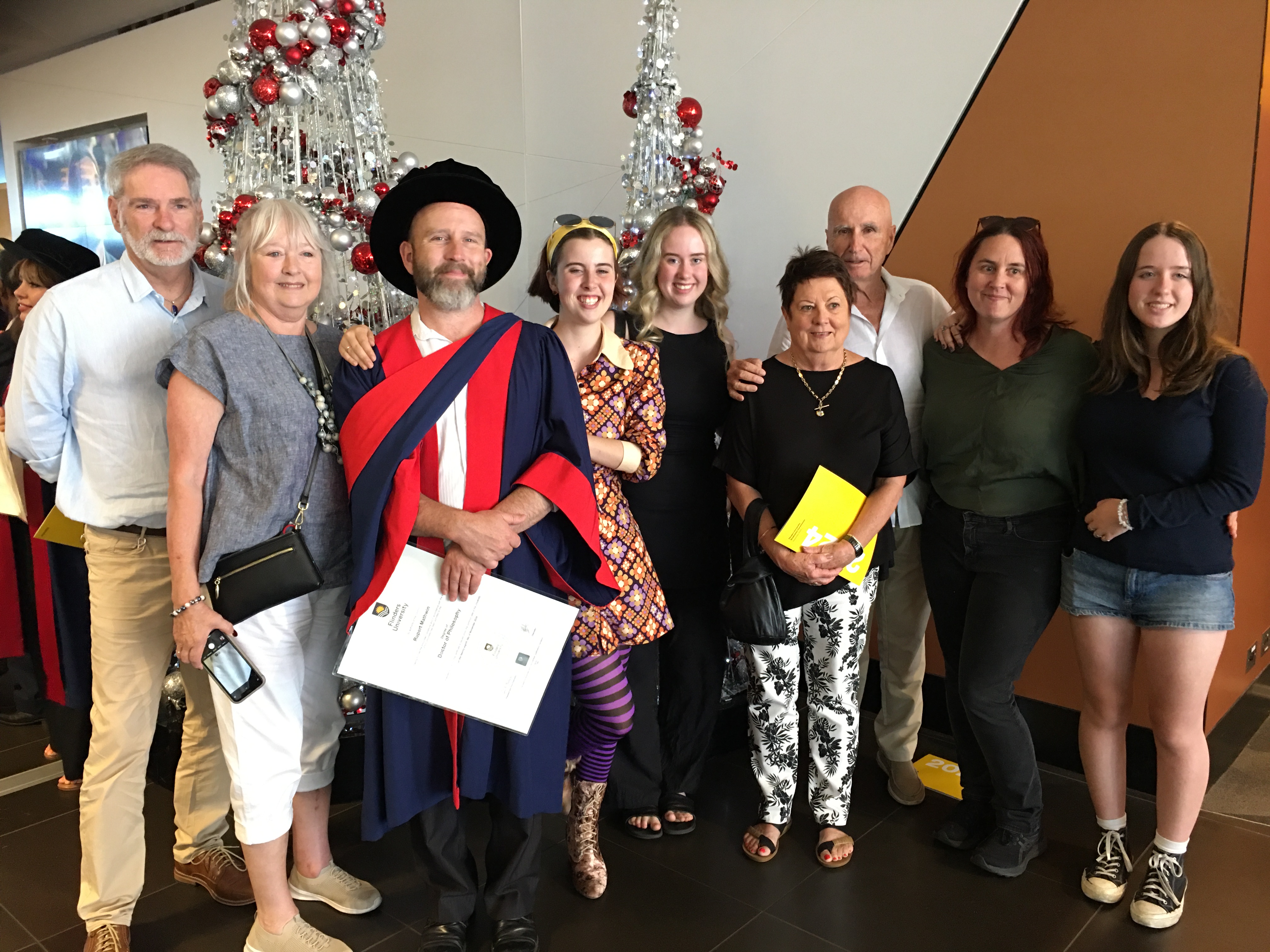 13.12.2024: Dr Rupert Mathwin celebrates the conferral of his PhD with his family at the 2024 Flinders University graduation ceremony.