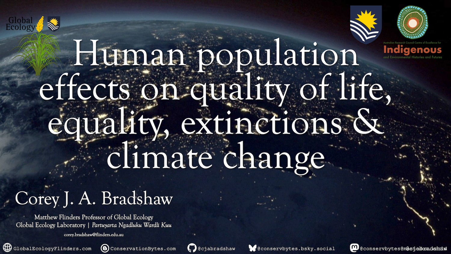 10.09.2025: Corey Bradshaw presented ‘Human population effects on quality of life, equality, extinctions & climate change’ at a public event organised by Sustainable Population Australia.