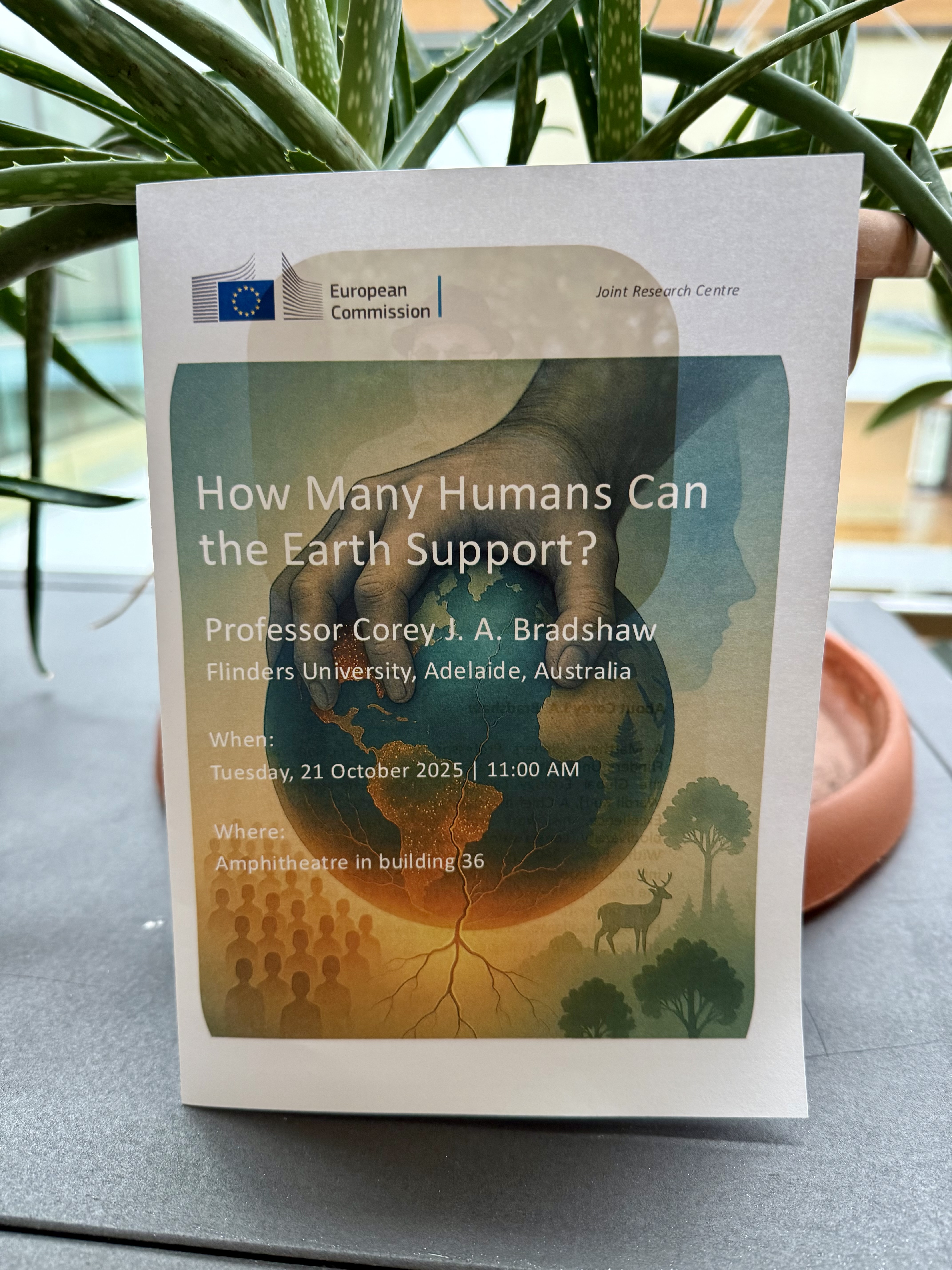 21.10.2025: Corey Bradshaw presented ‘How many humans can the Earth support?’ at the European Commission Joint Research Centre in Ispra, Italy.